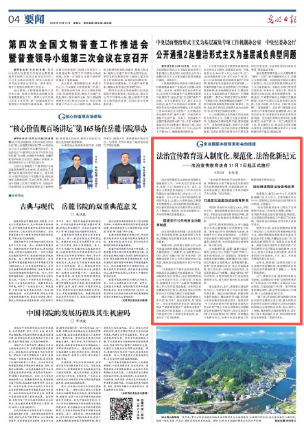 法治宣傳教育是全面依法治國的長期基礎性工作。今年是全民普法40周年,也是“八五”普法收官之年。近日,全國人大常委會表決通過了《中華人民共和國法治宣傳教育法》,該法自11月1日起施行。在10月30日舉行的國新辦新聞發布會上,全國人大常委會法工委副主任黃薇表示,法治宣傳教育法的通過,標志著我國的法治宣傳教育事業全面邁入了制度化、規范化、法治化的新紀元,具有里程碑式的重要意義。
