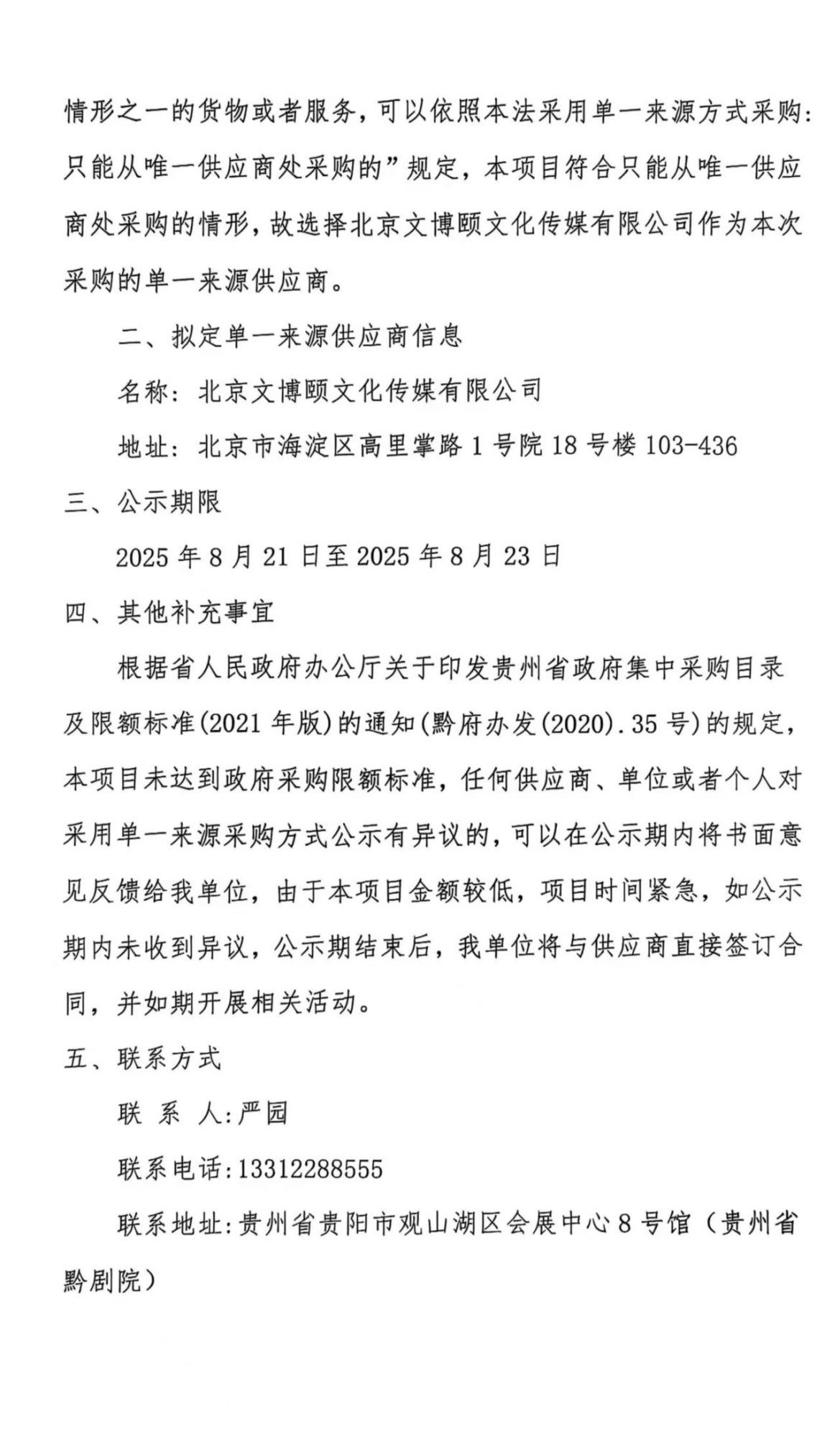 貴州省黔醅劇院委約北京文博頤文化傳媒有限公司法人代表白昱創作\編配《憶別離》、《滿庭芳》二首作品項目單一來源公告
