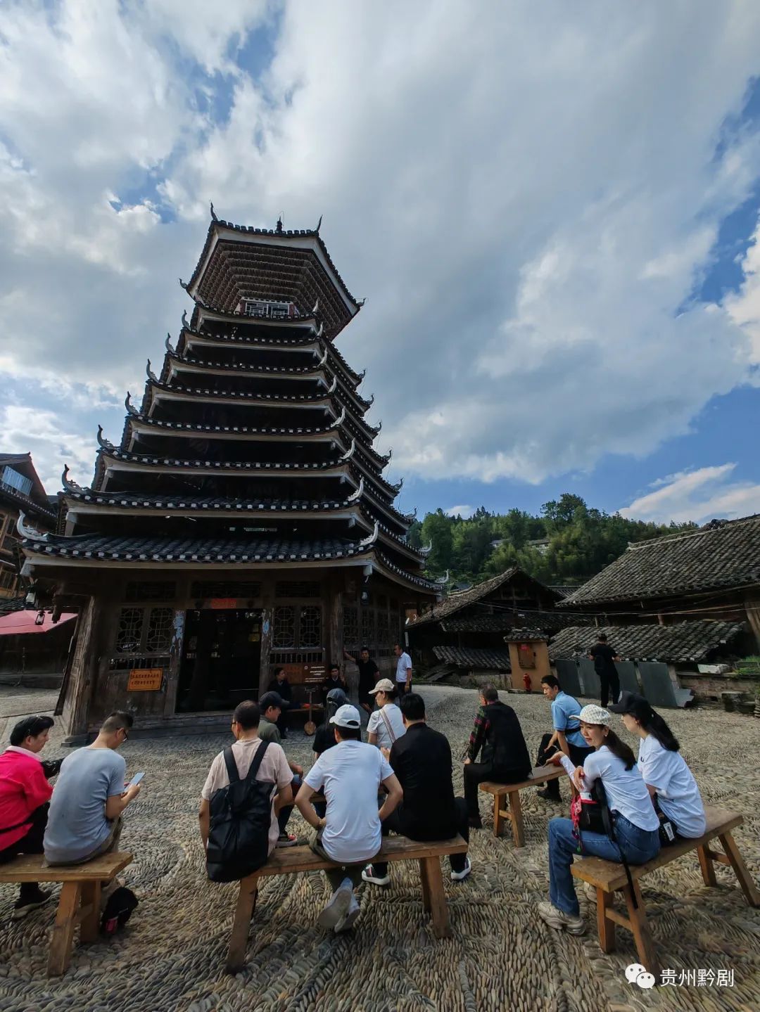 從江鼓樓采風觀看侗族群眾現場演藝侗族大歌