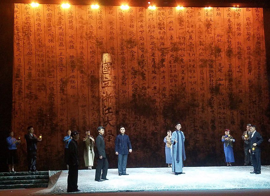 此次《湄水長(zhǎng)歌》中的演員,黔劇院的老中青三代演員全上陣。中國(guó)很多大型的院團(tuán)都是以女角為主的戲,而《湄水長(zhǎng)歌》則是兩個(gè)男角的戲,一個(gè)是時(shí)任浙江大學(xué)的校長(zhǎng)竺可楨、一位是時(shí)任湄潭縣長(zhǎng)嚴(yán)溥泉。這個(gè)縣長(zhǎng)留過(guò)洋,他懂得教育興邦、教育救國(guó),所以在浙江大學(xué)四處無(wú)援的情況下,他主動(dòng)寫(xiě)信給竺可楨邀請(qǐng)浙大到湄潭辦學(xué)。在他的努力下,湄潭老百姓也很支持,把當(dāng)?shù)氐奈慕甜^、文廟、救濟(jì)院等等大約有三百多間房屋全部提供給浙江大學(xué)辦學(xué),所以浙大能夠在湄潭落戶,生存發(fā)展到現(xiàn)在成為國(guó)內(nèi)有名的大學(xué),跟當(dāng)年的湄潭百姓、縣長(zhǎng)的努力是分不開(kāi)的。