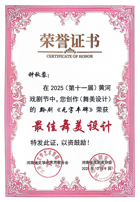 在此高水準(zhǔn)、強(qiáng)陣容的競技平臺上,我院傾力打造的大型交響黔劇《無字豐碑》以其深厚的歷史意蘊(yùn)、創(chuàng)新的藝術(shù)表達(dá)、精湛的表演水準(zhǔn)和恢弘的舞美音樂架構(gòu)脫穎而出,成功入圍終評展演,并最終斬獲12項(xiàng)大獎,創(chuàng)下近年來我院參評國家級區(qū)域性重大戲劇節(jié)會的最佳成績之一。