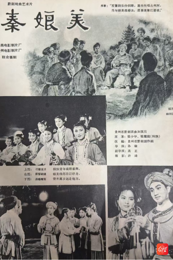 1960年,黔劇《秦娘美》由上海電影制片廠拍攝,中國電影先驅者、導演孫瑜擔任導演,在和《劉三姐》《阿詩瑪》一道公映后,從全國風靡至東南亞地區(qū),給予觀眾對黔劇的美好記憶。