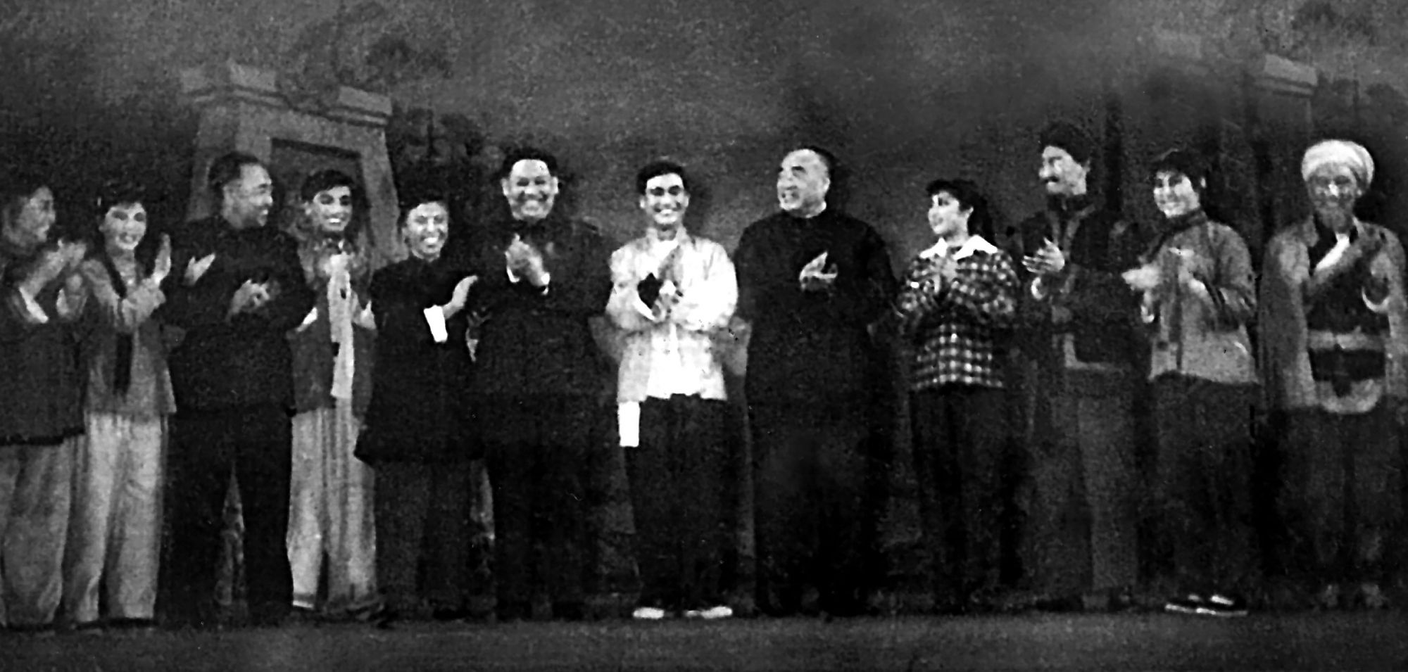 1964年3月,全國人大委員長朱德、貴州省第一書記、省長周林接見《朝陽溝》演員并合影留念。 | |