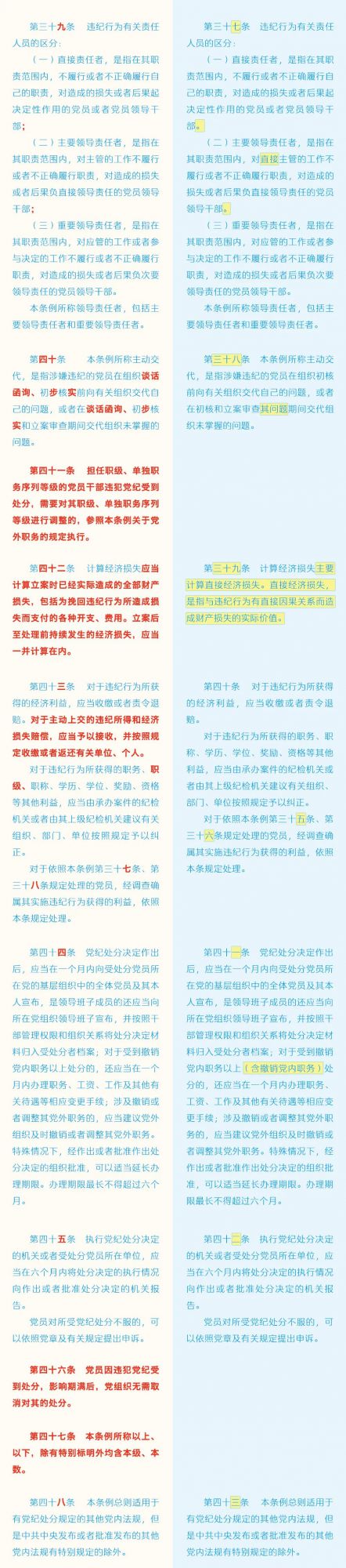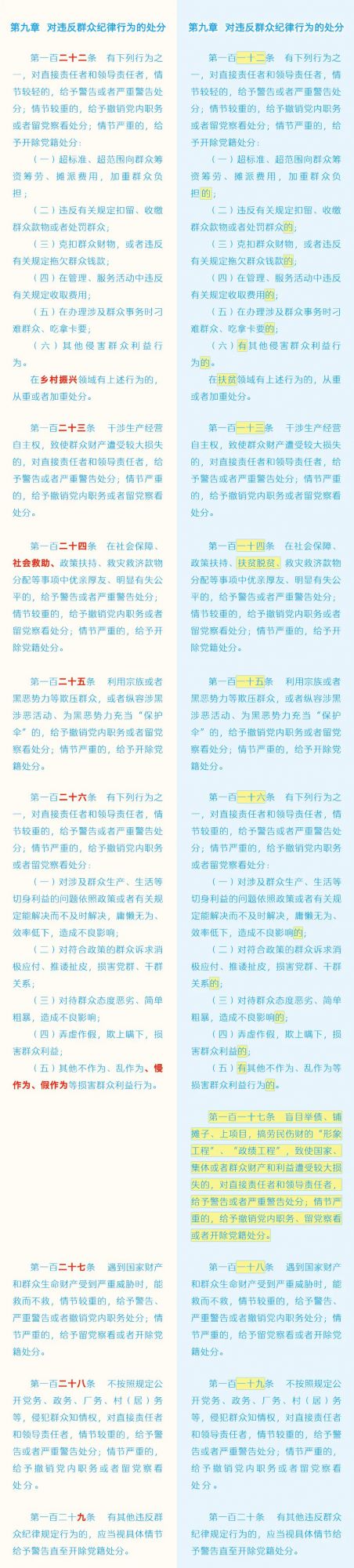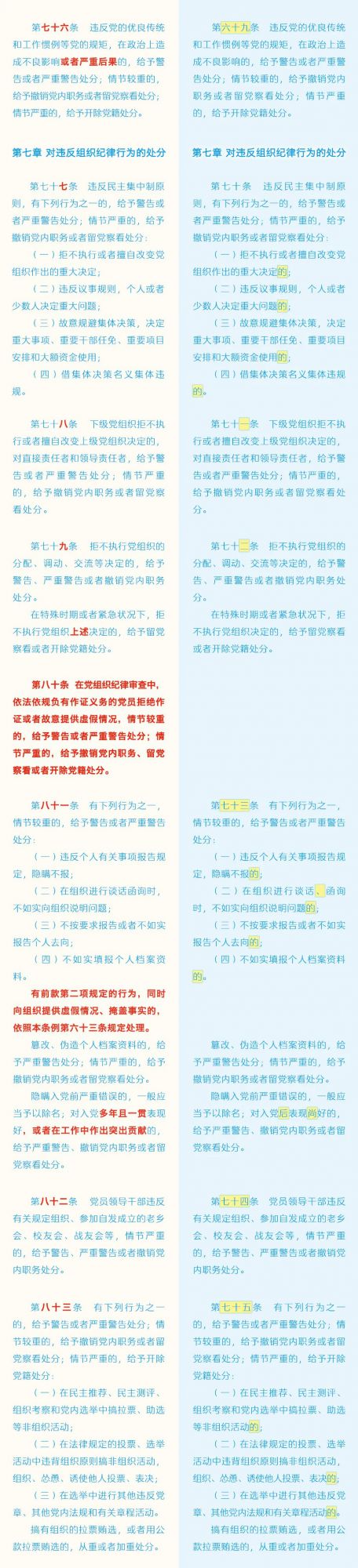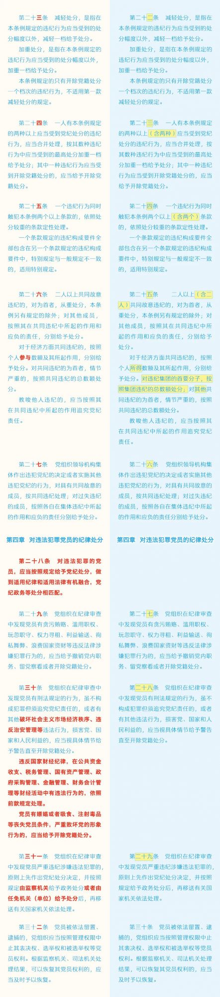《中國(guó)共產(chǎn)黨紀(jì)律處分條例》修訂條文對(duì)照表